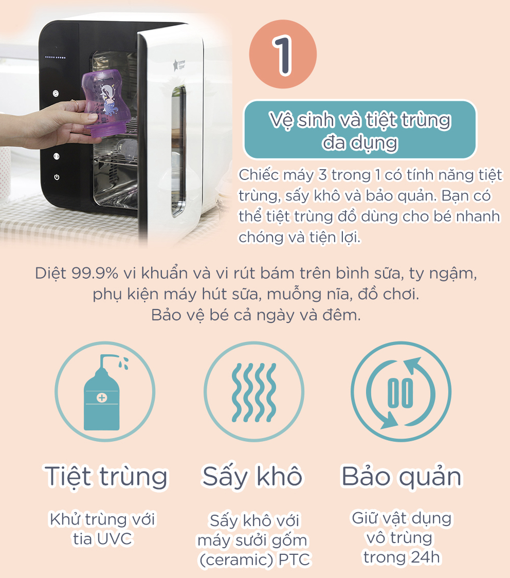 Các chức năng xịn xò của Máy tiệt trùng bằng tia UV và sấy khô Tommee Tippee