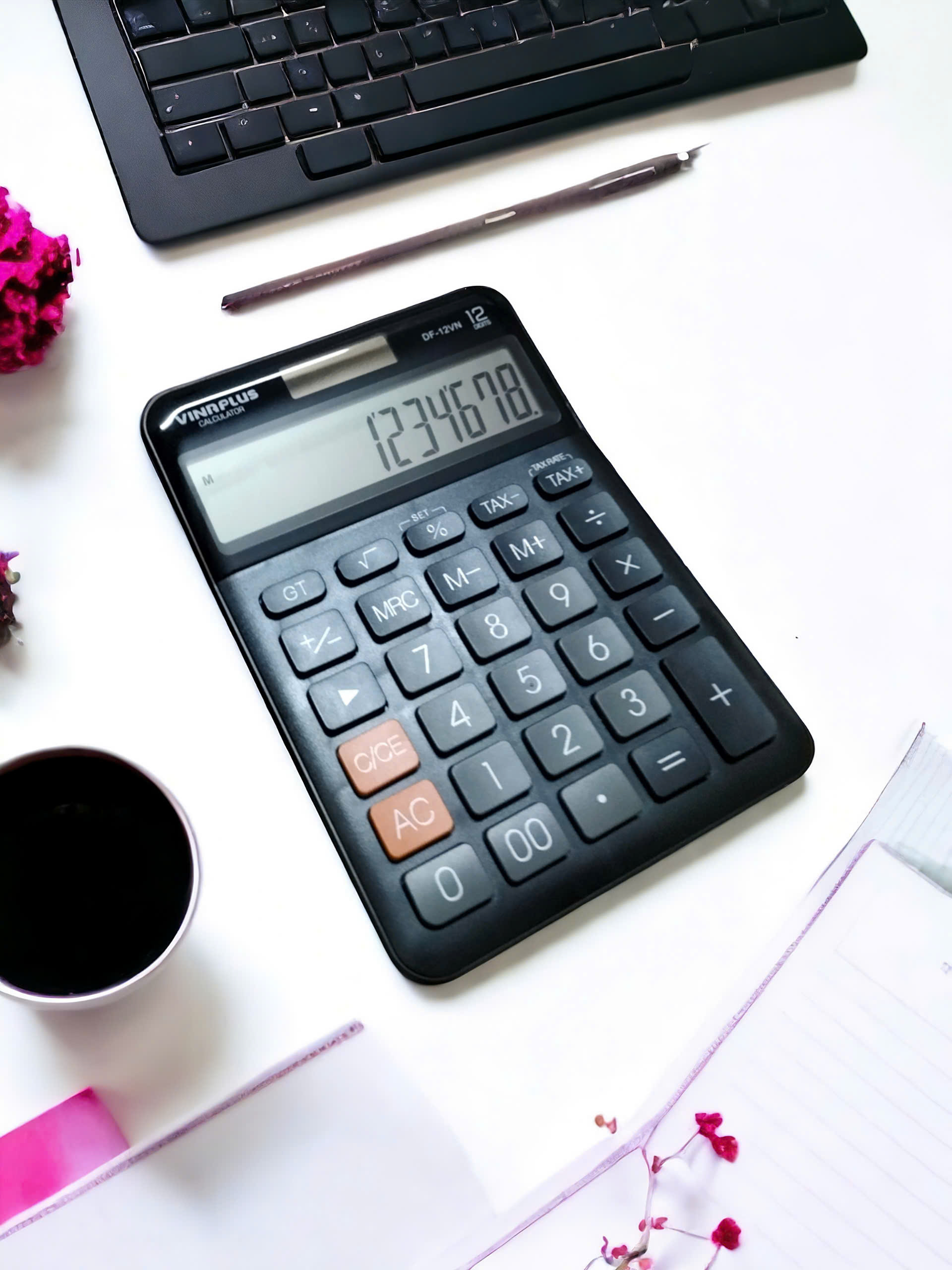 DÙNG CHO KẾ TOÁN - NHÂN VIÊN TÍNH TIỀN Kích thước to 12 số [Dài x Rộng x Cao] cm : 20.6 x 15 x 3.5 cm - Màn hình lớn dễ dàng