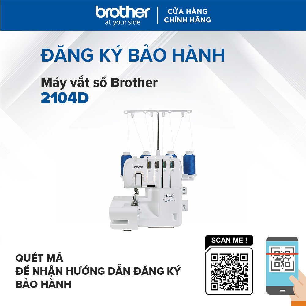 Máy Vắt Sổ Brother 2104D - Trắng được cài đặt với nhiều tính năng thông minh sẽ giúp bạn có thể sử dụng máy cho nhu cầu may vá đồ dùng trong gia đình hay nhu cầu kinh tế đều tiện dụng. Máy vắt sổ có kiểu dáng hiện đại cùng màu sắc nhã nhặn sẽ góp phần tạo nên điểm nhấn nổi bật cho không gian sử dụng. Máy với đèn Led soi mới giúp bạn có thể làm việc ở những khung giờ khác nhau trong ngày một cách dễ dàng.