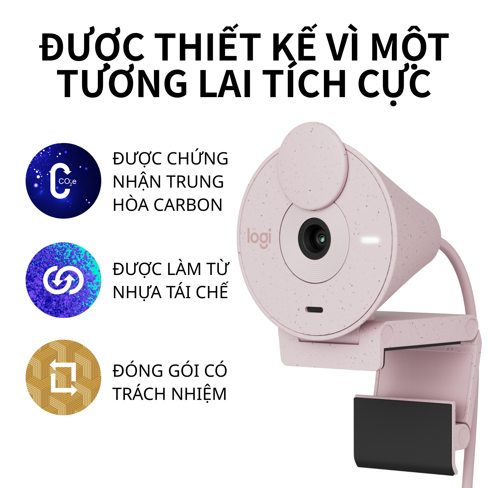 Webcam Full HD Logitech Brio 300 Màn che ống kính, Micrô giảm tiếng ồn, USB-C, được chứng nhận cho Zoom, Microsoft Teams, Google Meet, tự động điều chỉnh Ánh sáng