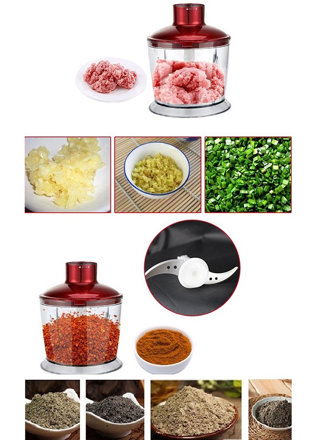 Công dụng: Đa chức năng: xay thịt, xay đá, cá, rau quả, đánh trứng, làm nước sốt... Chi tiết: Tiện lợi để chế biến thực phẩm cho trẻ em . Thiết kế gọn nhẹ, dễ sử