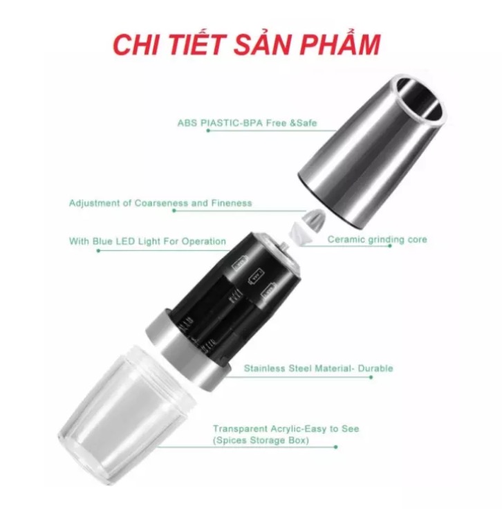 - Lọ xay tiêu sử dụng 6 viên pin đũa AAA THÔNG TIN SẢN PHẨM :