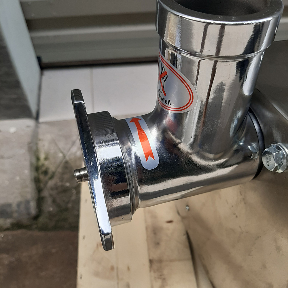 Cấu tạo của Máy Xay Thịt ABG HD12 thì như hình ảnh các bạn đã thấy, nó gồm một bộ phận động cơ truyền chuyển động cho bộ lưỡi dao, bộ phận truyền chuyển động và bộ phận dao thái của Máy Xay Thịt ABG HD12 là tách biệt nhau, có thể tháo dời khi vệ sinh máy, có thể thay bộ lưỡi khác có độ dày mỏng khác để đáp ứng đúng với nhu cầu của các bạn.