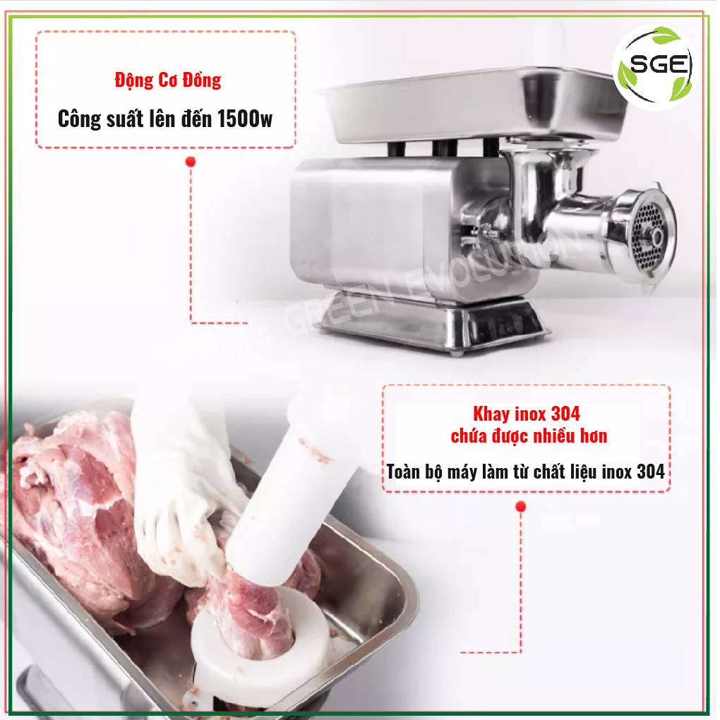 ✨Máy Xay Thịt Công Nghiệp SGE MGTurbo150 Đa Chức Năng Với 2 Đầu Xay Cắt, Tiêu Chuẩn Inox304 Công Suất Lớn, Dễ Vệ Sinh