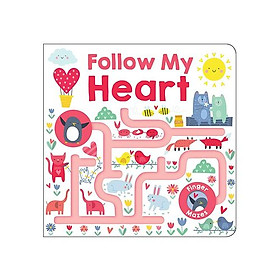 Follow My Heart is a seasonal maze adventure in the Follow Me series featuring cute animal characters, Valentine-themed scenes, and finger trails.