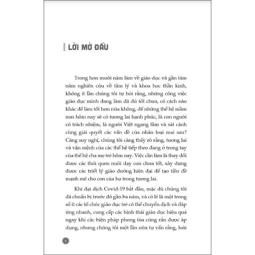 Tác giả đã tóm tắt những điểm lưu ý và mức độ được coi là cẩm nang nuôi dạy con cái theo phương pháp Shichida mà các phụ huynh có thể thực hành kể từ bây giờ, như: Cho con học tập từ sách tranh, tạo ra một nơi để trẻ có thể gặp gỡ những thứ mà chúng đam mê, cho trẻ ăn theo một chế độ ăn uống lành mạnh, cho trẻ tiếp xúc với tiếng Anh từ khi còn nhỏ, học thông qua chơi cùng nhau, dùng tình yêu thương để giao tiếp với trẻ,…