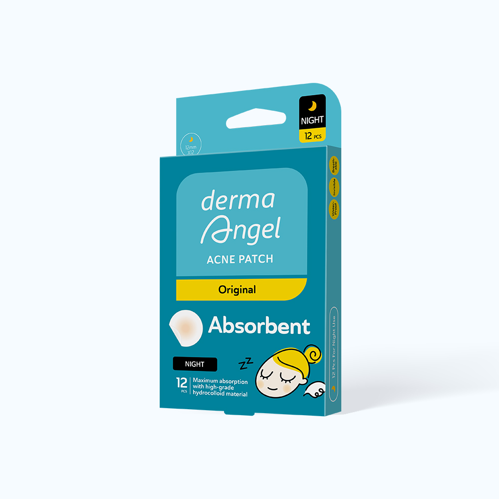 Miếng dán mụn ban đêm Derma Angel (12 miếng/hộp) là miếng dán mụn ban đêm với lớp Hydrocolloid dày hơn sẽ bám chặt bề mặt da và hút mụn hiệu quả cả đêm đồng thời