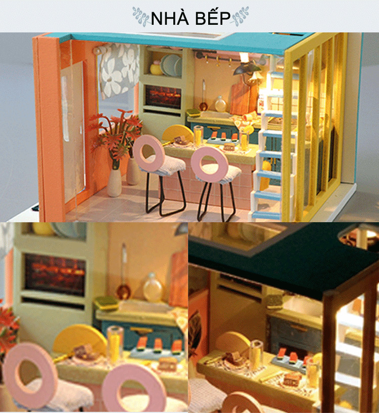 Nhà búp bê lắp ghép bằng gỗ có đèn lend sunshine Study