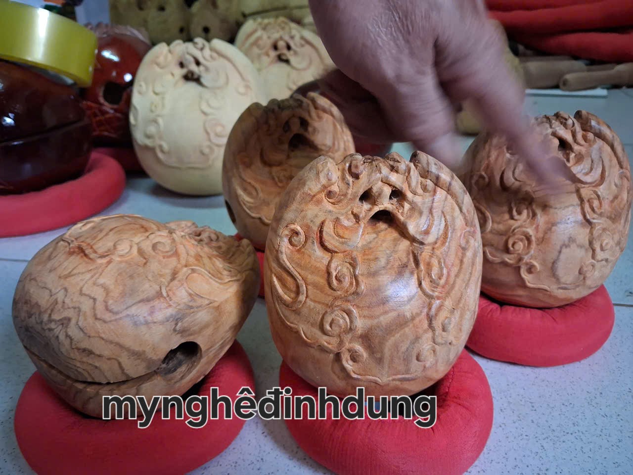 Mua tại TiktokMõ tụng kinh Phật được làm bằng chất liệu gỗ sưa đỏ liền khối tự nhiên 100% Kích thước 10x10x10cm _ Mõ được chế tác làm và hoàn thiện từ bàn tay khối óc tài hoa và những người thợ giàu kinh nghiệm cũng như tay nghề cao trong làng nghề truyền thống.