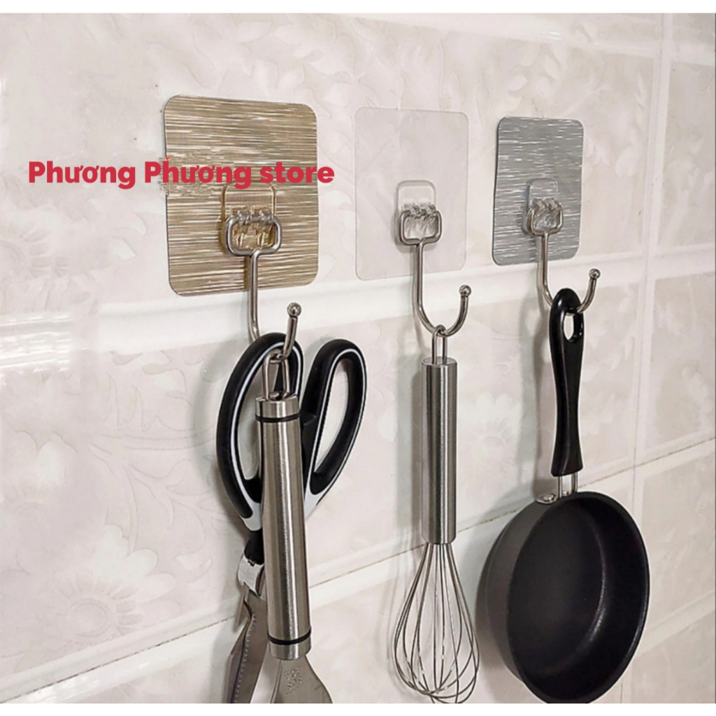 Móc treo đồ dán tường bằng nhựa trong, miếng dán bằng bạc móc treo bằng Inox siêu dính chịu lực tốt