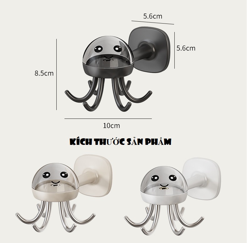 Móc Treo Đồ Dáng Tường Hình Bạch Tuộc Xoay 360 Mô Tà Sản Phẩm: Chất Liệu: Nhựa ABS, Mạ Kích Thước: 8.5cm x 5.6cm x 5.6cm Màu Sắc: Trắng, Kem, Xàm. Shop