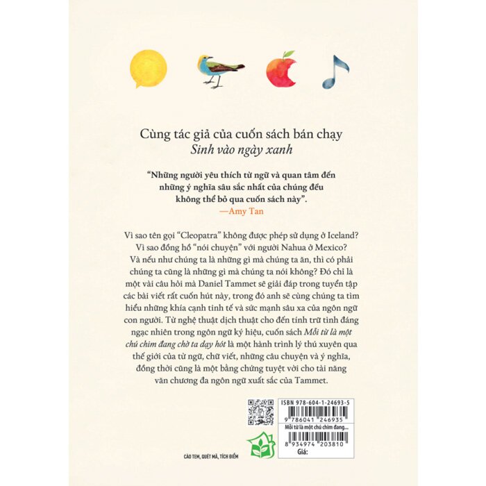 Vì sao tên gọi “Cleopatra” không được phép sử dụng ở Iceland? Vì sao đồng hồ “nói chuyện” với người Nahua ở Mexico? Và nếu như chúng ta là những gì mà chúng ta ăn, thì có phải chúng ta cũng là những gì mà chúng ta nói không? Đó chỉ là một vài câu hỏi mà Daniel Tammet sẽ giải đáp trong tuyển tập các bài viết rất cuốn hút này, trong đó anh sẽ cùng chúng ta tìm hiểu những khía cạnh tinh tế và sức mạnh vô cùng của ngôn ngữ con người. Từ nghệ thuật dịch cho đến tính trữ tình đáng ngạc nhiên trong ngôn ngữ ký hiệu, cuốn sách Mỗi từ là một chú chim đang chờ ta dạy hót là một hành trình lý thú xuyên qua thế giới của từ ngữ, chữ viết, những câu chuyện và ý nghĩa, đồng thời cũng là một bằng chứng tuyệt vời cho tài năng văn chương và đa ngôn ngữ xuất sắc của Tammet.