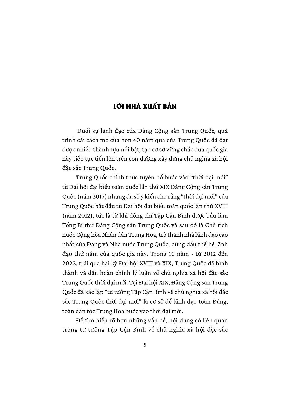 Để tìm hiểu rõ hơn những vấn đề, nội dung có liên quan trong tư tưởng Tập Cận Bình về chủ nghĩa xã hội đặc sắc Trung Quốc thời đại mới, Nhà xuất bản Chính