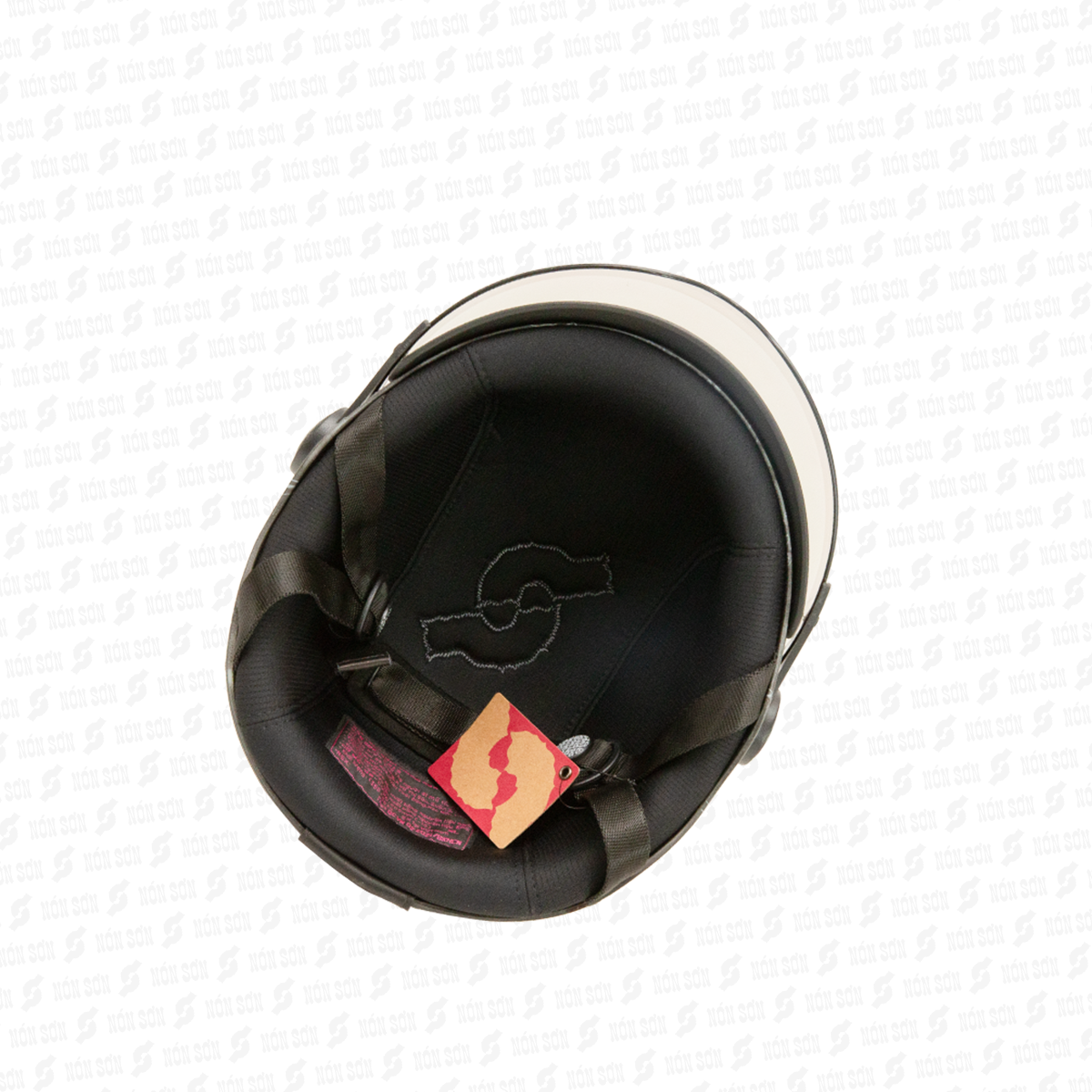 • Phần logo NÓN SƠN được gắn trên vỏ nón bảo hiểm Nón Sơn được làm từ da thật.