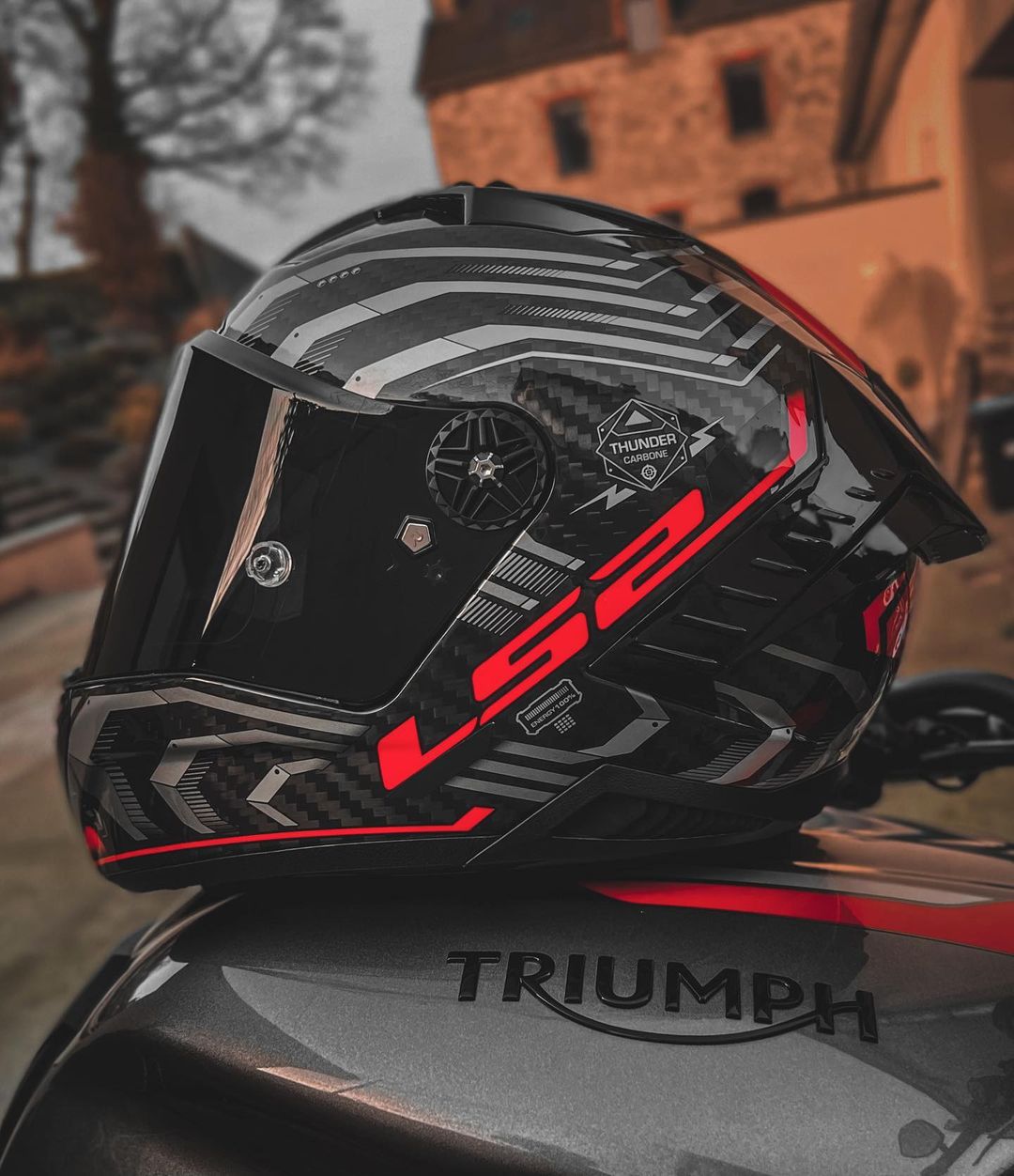 LS2 FF805 Thunder Carbon là mũ bảo hiểm fullface cao cấp, vỏ sợi carbon, trọng lượng nhẹ (~1.4kg)