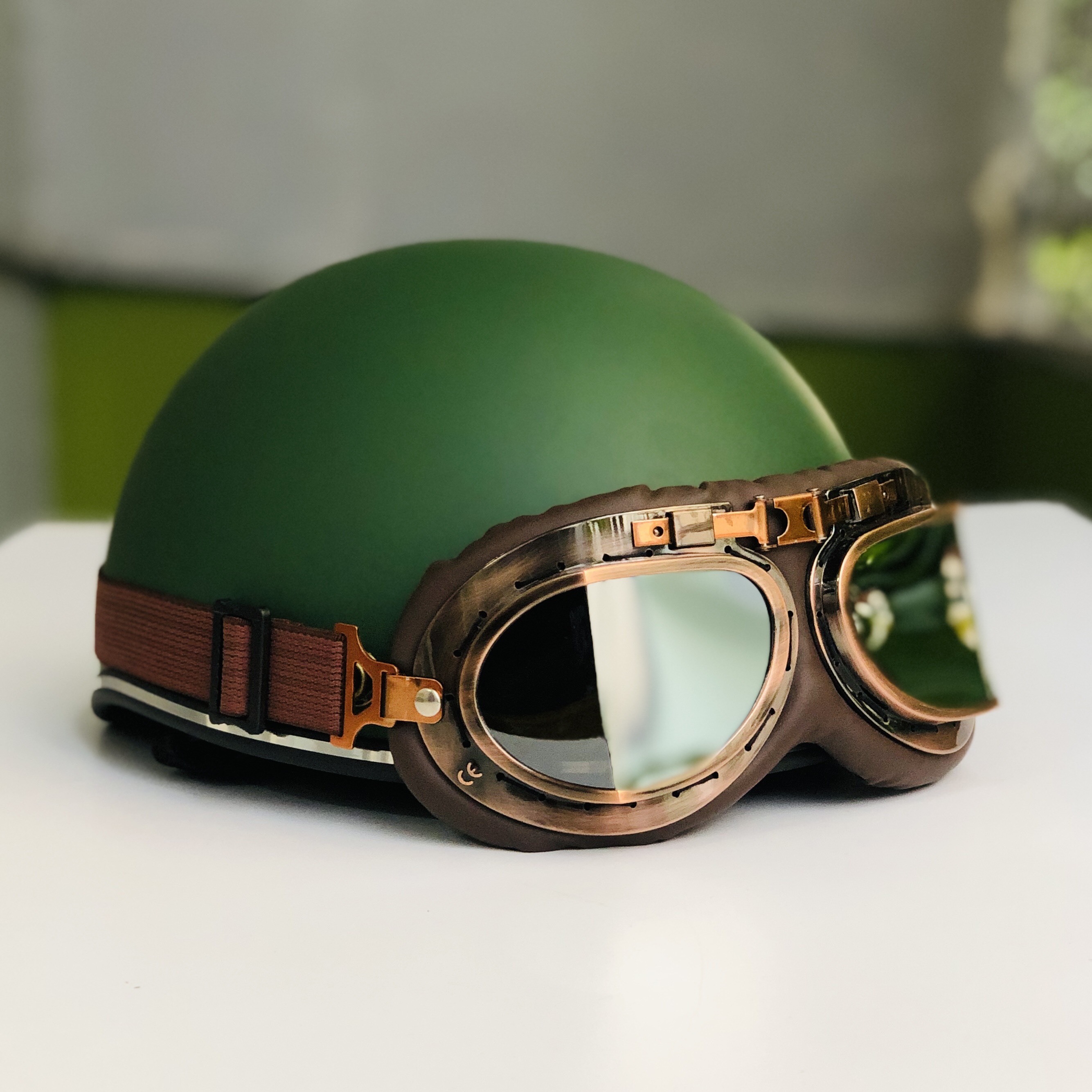 MŨ BẢO HIỂM XE MÁY NỬA ĐẦU RONA LUXURY KÈM KÍNH PHI CÔNG VIỀN ĐỒNG - TẶNG TAI MÈO - Thương hiệu: RONA - Do công ty TNHH SX TM ĐT ANH DUY SỞ HỮU