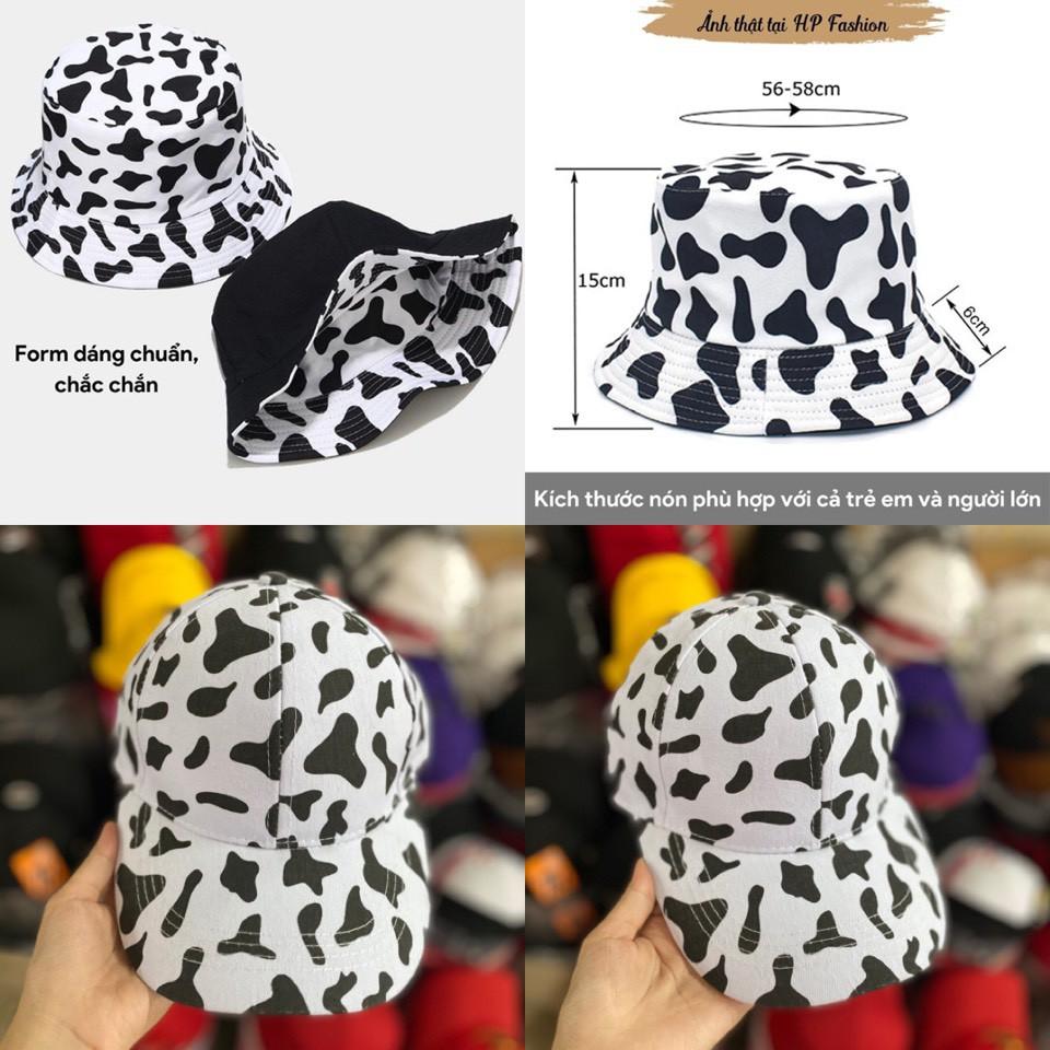 Mũ vành 2 mặt, bucket hat họa tiết bò sữa dễ thương
