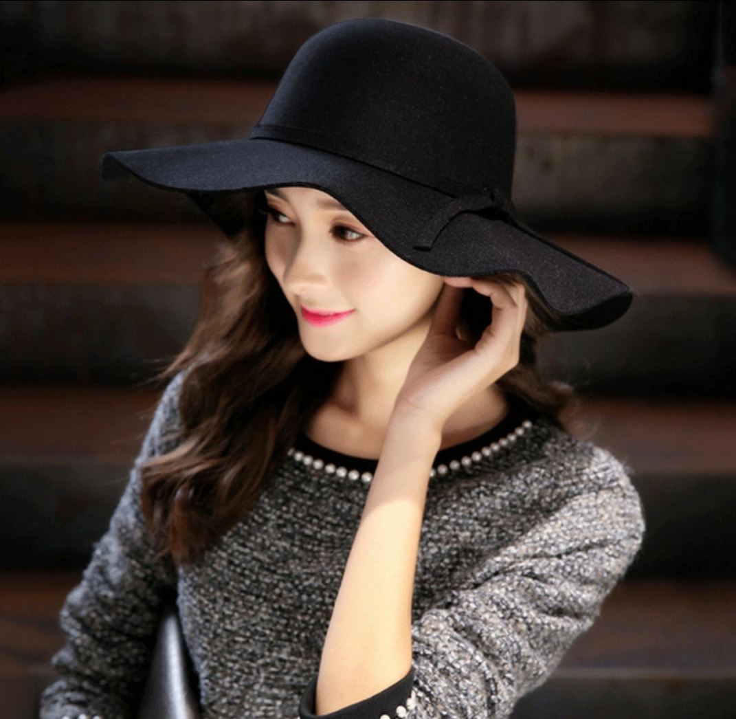 Mũ chống nắng rộng vành nữ nón đi biển đẹp fedora Chất liệu nỉ Hàng nhập