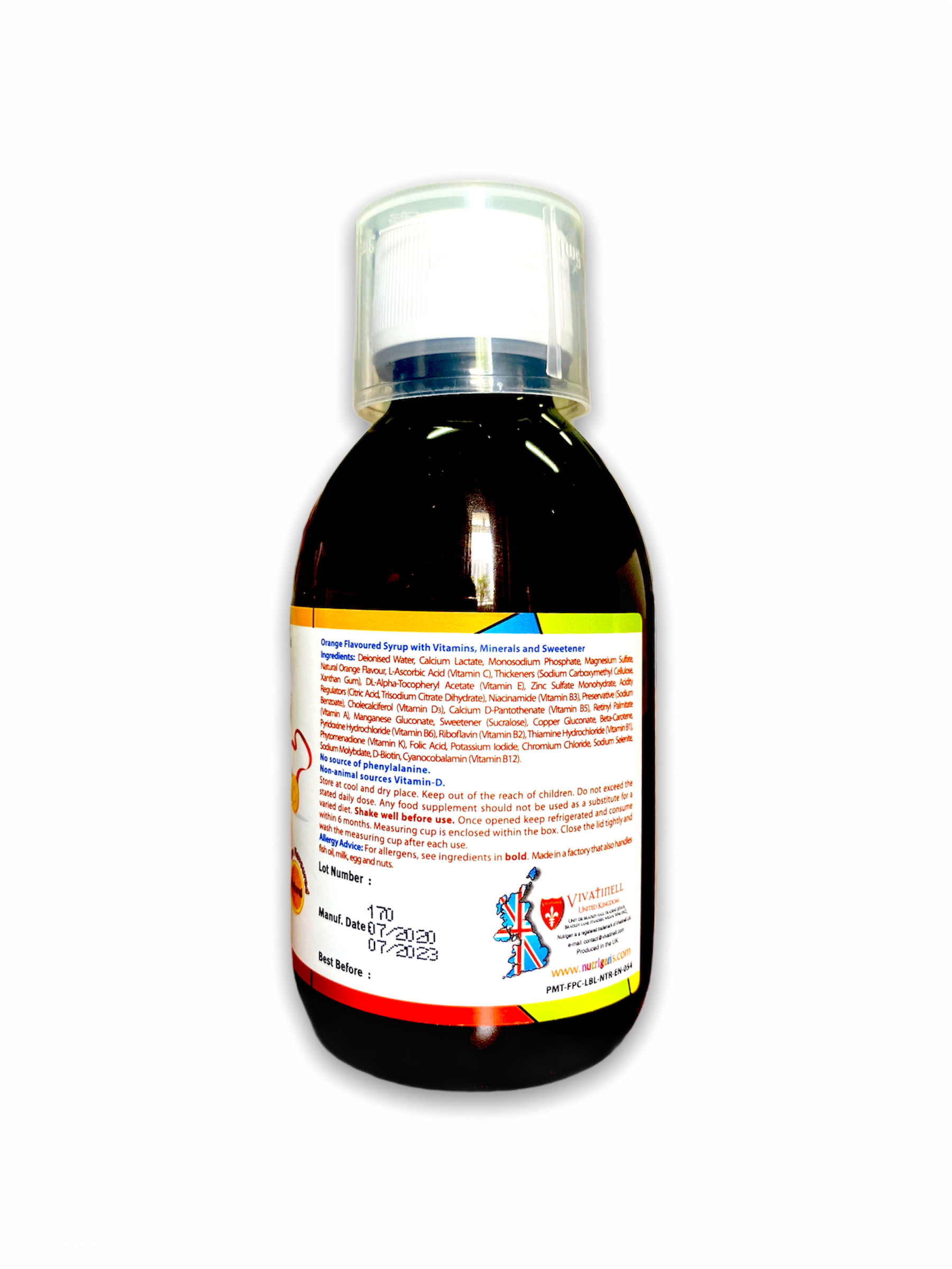 Calci lactat, mononatri phosphat, magnesi sulfate, L-ascorbic acid (vitamin C), DL-alpha-tocopheryl acetat (vitamin E), kẽm sulfat monohydrat, niacinamid (vitamin B3), cholecalciferol (vitamin D3), calci D-pantothenat (vitamin B5), retinyl palmitat (vitamin A), mangan gluconat, đồng gluconat, pyridoxin hydroclorid (vitamin B6), riboflavin (vitamin B2), thiamin hydroclorid (vitamin B1), phytomenadion (vitamin K), acid folic, kali iod, crom clorid, natri selenit, natri molybdate, D-biotin, cyanocobalamin (vitamin B12).