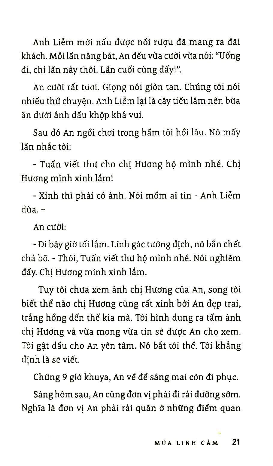 Mua tại TiktokMùa Linh Cảm đằng sau cái trần trụi, bi thảm của cuộc chiến và 18 cái chết cứ lấp lánh tình người, bản lĩnh của những chiến binh trong một cuộc chiến đẫm máu ở “đất bên ngoài Tổ quốc” mang ý nghĩa cao cả: chiến đấu vì phẩm giá con người, vì nghĩa vụ quốc tế cao cả. Mùa linh cảm nhắc nhớ điều ấy và đúng như Olga Fyodorovna Berggolts đã nói về những ai dám chết cho người khác được sống: “Никто не забыт и ничто не забыто” (Không ai bị lãng quên, không điều gì bị lãng quên).