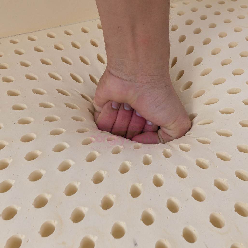 - Nệm sử dụng nguyên liệu 100% cao su thiên nhiên mang lại trải nghiệm cho khách hàng sự êm ái và đàn hồi cực tốt. - Với cấu tạo 5000 lỗ tròn nhỏ ở
