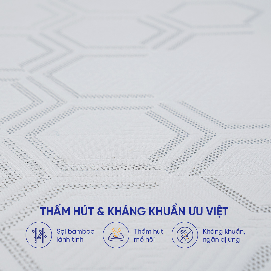 - Giảm thiểu đau nhức tức thì nhờ tính năng giải phóng áp lực cơ thể Nệm Goodnight Hachi sở hữu bề mặt nệm có thiết kế cấu trúc lượn sóng (profile-cutting) hiện đại giúp nâng đỡ cơ thể đa điểm, massage toàn thân. Kích thích các huyệt đạo mang đến giấc ngủ thư giãn cho bạn vào mỗi tối. Kết cấu 2 lớp foam với độ dày lý tưởng 15cm không chỉ đàn hồi tốt mà còn có khả năng nâng đỡ cơ thể, giữ cột sống của bạn ổn định và vững chắc ở mọi tư thế nằm. 2.Bảo vệ làn da nhờ vỏ nệm Bamboo kháng khuẩn hiệu quả Vải Bamboo được xếp vào loại sợi vải tự nhiên, thế nên Vua Nệm đã áp dụng ngay vào vỏ áo nệm Hachi để góp phần chung tay bảo vệ môi trường. Ngoài ra, sợi vải Bamboo có tính chống nấm mốc và vi khuẩn tối ưu. Với đặc trưng vải tre là cân bằng nhiệt, mùa đông làm ấm và mùa hè làm mát. Nên vỏ áo nệm Hachi có thể hấp thụ và làm bay hơi mồ hôi của cơ thể, đặc biệt có lợi với trẻ nhỏ, đảm bảo an toàn sức khỏe cho cả gia đình bạn. 3.Tạm biệt hầm hơi, bí nóng với cấu tạo lỗ thoáng khí thoáng mát Nệm Goodnight Hachi có cấu tạo lỗ thoáng khí giúp không khí được lưu thông tối đa, đem đến hiệu quả thoáng khí kép, thông thoáng. Nệm Hachi sẽ tác động trực tiếp đến chất lượng giấc ngủ mỗi đêm của bạn, nhẹ nhàng đem lại cảm giác thoáng mát, cho giấc ngủ trọn vẹn và thoải mái. 4.Dễ dàng vệ sinh & vận chuyển Nhờ thiết kế áo nệm có khóa kéo giúp người sử dụng dễ dàng tháo rời để vệ sinh. Ngoài ra, nệm khi mang đến được hút chân không, cuộn gấp gọn gàng và dễ dàng di chuyển. Lưu ý nhỏ với nệm Hachi này: