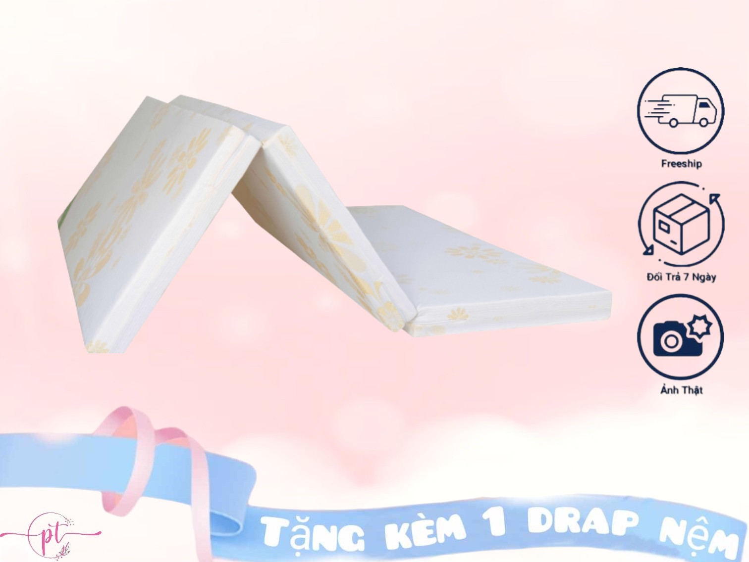 - Đệm có thiết kế gấp 3 tiện dụng, phù hợp với các không gian nhà hay phòng chật hẹp hiện nay giúp thoải mái cất giữ khi không sử dụng và di chuyển dễ
