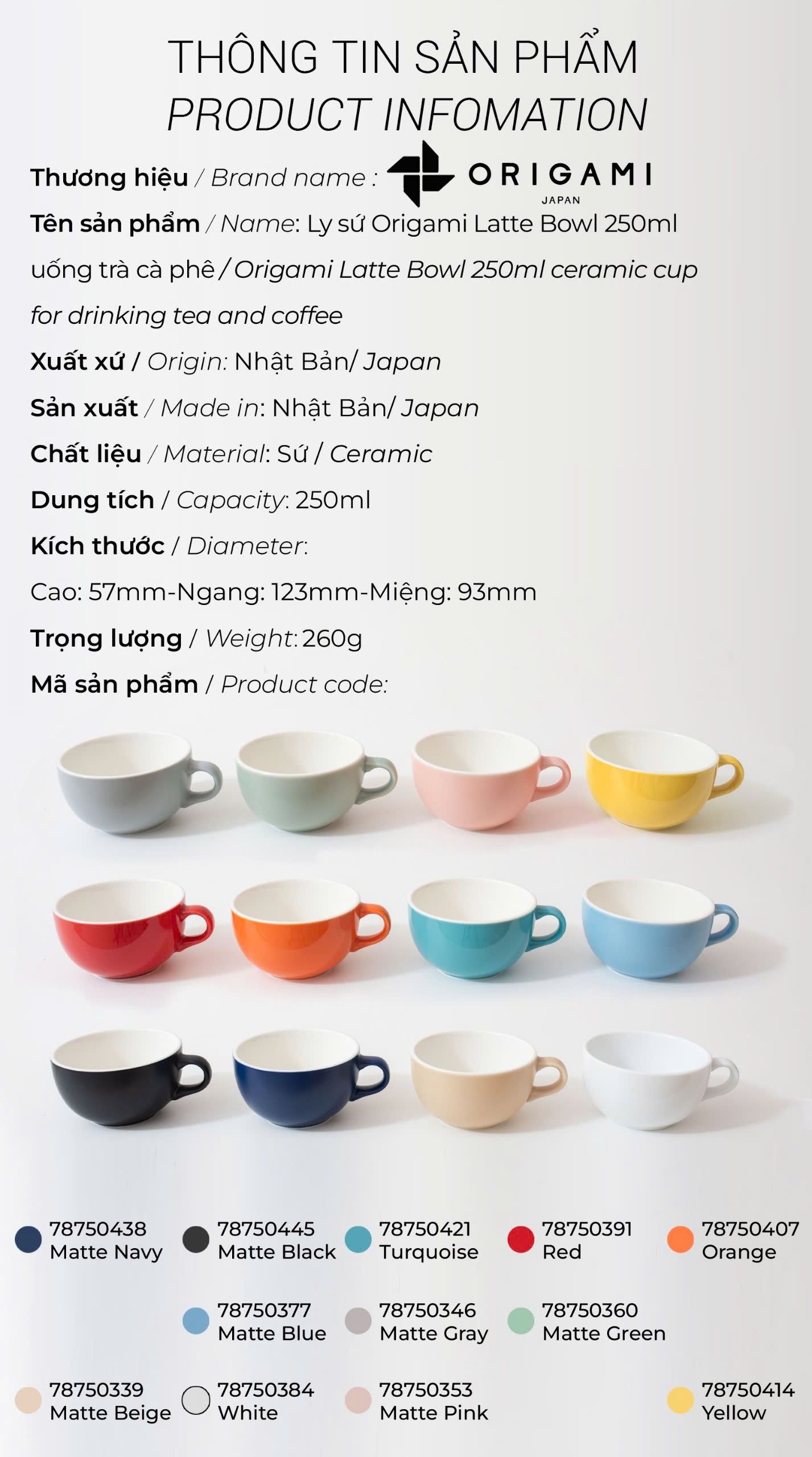 Ly sứ Origami Latte Bowl 250ml uống trà cà phê Ly sứ có độ dày cao, nặng tay giúp giữ nhiệt tốt. Vành miệng ly vát mỏng tạo cảm giác uống tốt hơn. Tay cầm