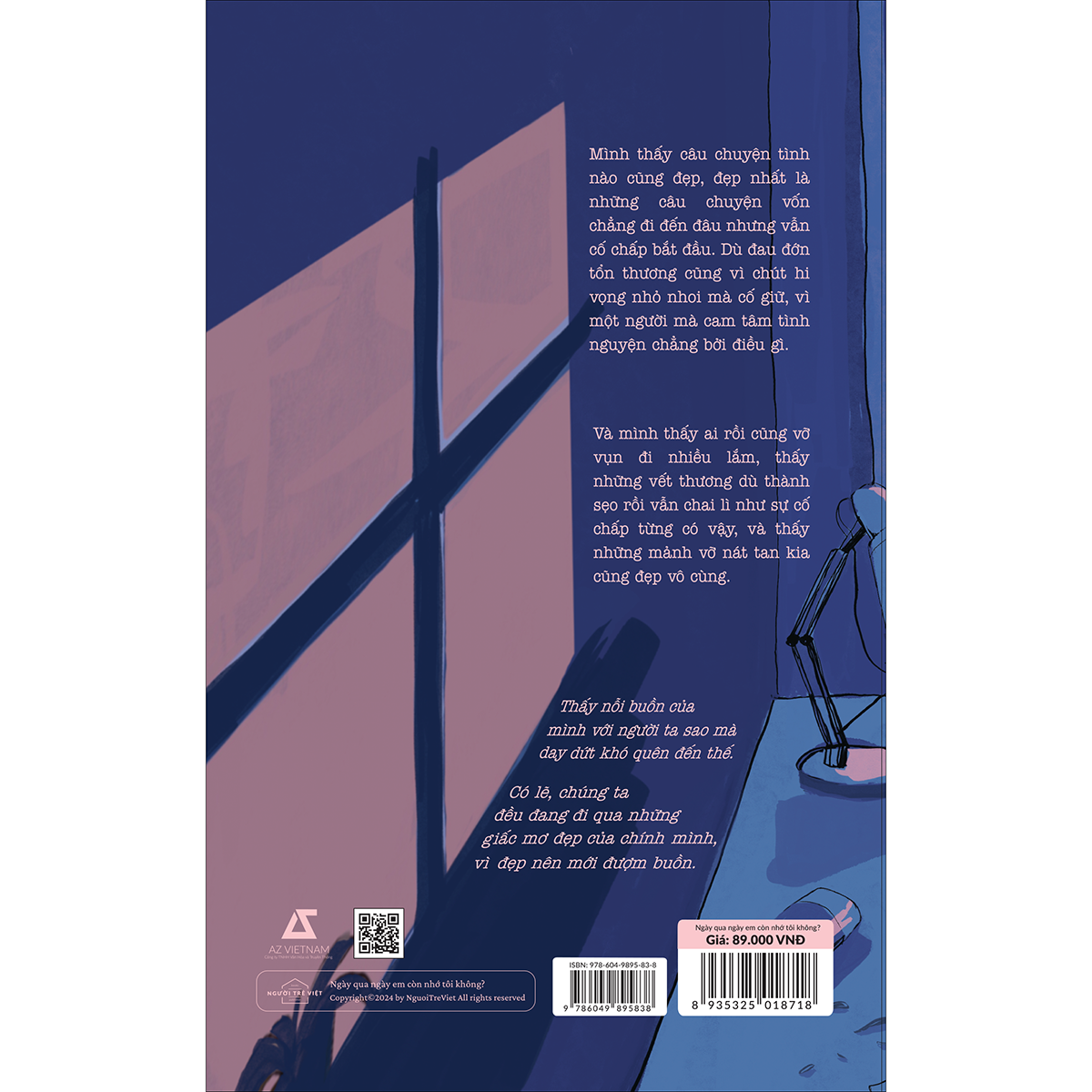 “Ngày qua ngày, em còn nhớ tôi không?” cũng đong đầy những cảm xúc như thế. Tựa pháo hoa rực rỡ trong màn đêm rồi chợt vụt tắt, những mối tình cứ ngỡ là định mệnh mà cả đời này bạn tìm kiếm, thế nhưng ở đó chỉ có chằng chịt vết xước, tổn thương đến mãi sau này. Từng trang sách chứa những lời tâm sự, trải lòng đầy sự nuối tiếc nhưng cũng không kém phần nhẹ nhõm, để bạn nhận ra rằng: “Đừng nghĩ rằng mình không xứng đáng, không giữ nổi yêu thương, rồi sẽ có người kiên nhẫn ở bên, đi cùng bạn đến cuối con đường. Chúng ta xứng đáng có được hạnh phúc!”