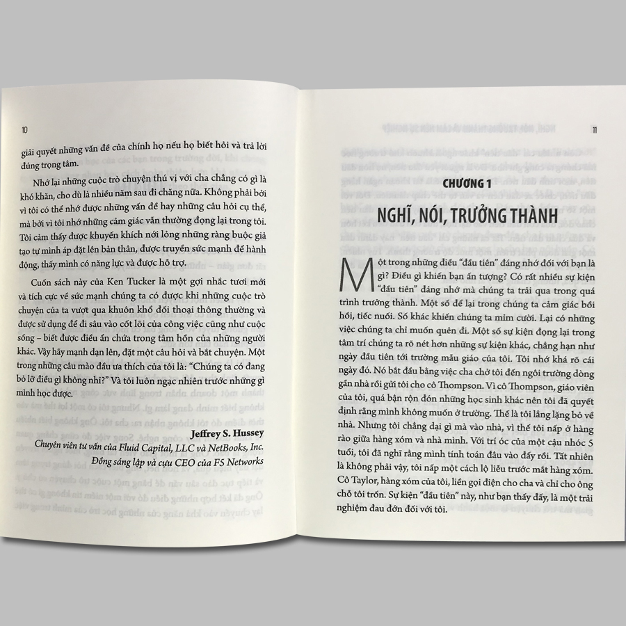 Cuốn sách “Nghĩ, nói, trưởng thành và làm nên sự nghiệp” là một gợi ý tươi mới và tích cực giúp bạn khai thác sức mạnh của những cuộc trò chuyện, đưa những cuộc trò chuyện vượt ra khỏi khuôn khổ “chém gió” thông thường và đi sâu vào cốt lõi của công việc, cuộc sống. Bạn hãy trở nên mạnh dạn hơn để bắt đầu những cuộc trò chuyện, đặt câu hỏi và bắt đầu khai mở hiểu biết của bản thân.