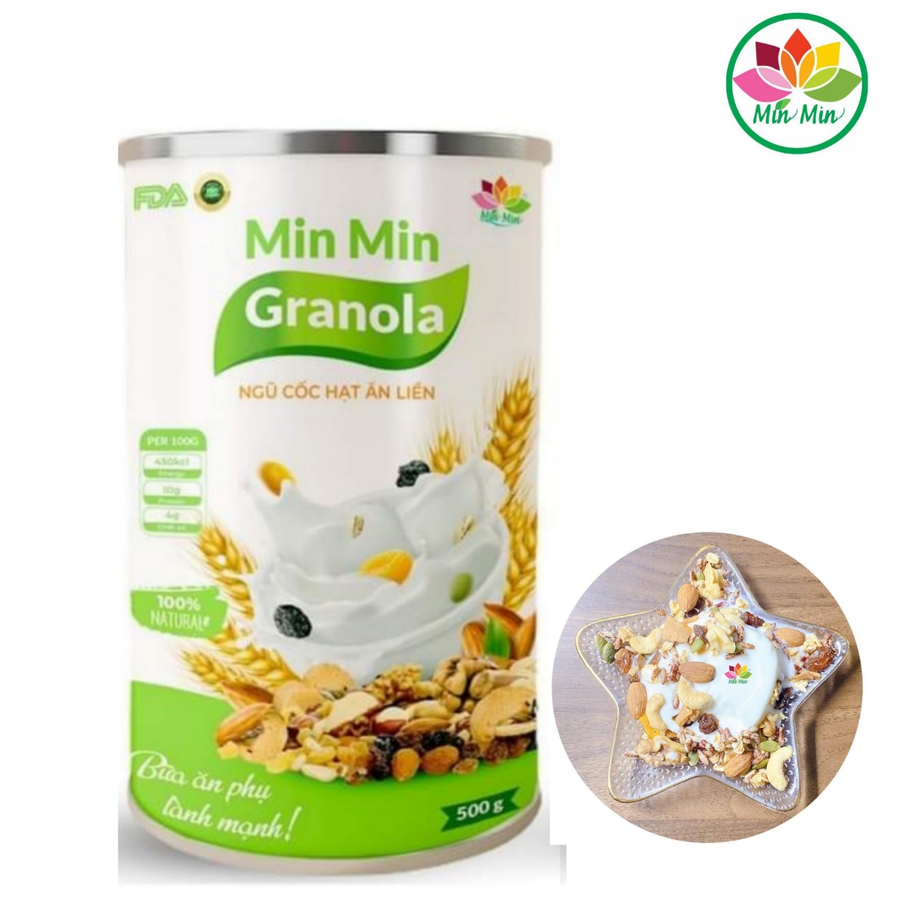 NGŨ CỐC ĂN LIỀN GRANOLA MIN MIN: Sản phẩm: Ngũ cốc dinh dưỡng min min; hạt dinh dưỡng, lợi sữa, tăng cân, giảm cân, nội tiết tố, bột ăn dặm; Ngũ Cốc Lợi Sữa,ngũ cốc bà bầu siêu dinh dưỡng min min;… Thành phần:1:Óc chó 2: hạnh nhân 3: hạt điều 4: hạt bí 5:yến mạch nướng mật ong 6:gạo lứt rong biển 7:nho 8:xoài 9:mứt dừa 10 ;muối  Công dụng: Giữ vóc dáng và giảm cân hiệu quả khoa học.  Cung cấp chất béo có lợi cho cơ thể.  Cung cấp 1 lượng lớn vitamin tổng hợp.  Một nguồn khoáng sản tốt cần thiết cho các cơ quan quan trọng.  Giảm mức cholesterol giảm nguy cơ gây bệnh tim mạch.  Giảm lượng đường trong máu.  Cải thiện sức khoẻ đường ruột (hệ tiêu hoá tốt)  Cung cấp nhiều chất chống oxy hoá cho cơ thể trẻ hoá.  Là lựa chọn thông thái cho chế độ ăn chay, ăn kiêng không thiếu chất và mệt mỏi. Cách sử dụng: Cách dùng: Giảm cân : trộn cùng với sữa chua hoặc sữa tươi không đường, có thể thấy bữa ăn trong ngày Tăng cân: trộn với sữa có đường và ăn nhiều thức ăn như thường ạ Bảo quản: cho vào ngăn mát tủ lạnh ăn dần HSD:8 tháng NGÀY SẢN XUẤT: in trên bao bì xuất xứ: VIỆT NAM Số tự công bố:01/dinduongminminvietnam/2020 Công ty TNHHTM VÀ DINH DƯỠNG MIN MIN VIỆT NAM Địa chỉ:xóm 3 thôn cấn hạ xã cấn hữu huyện quốc oai tp hà nội sản xuất tại:HKD nhà máy chế biến thực phẩm dinh dưỡng min min việt nam Địa chỉ: nguyễn thu nga,thôn ro,xã tuyết nghĩa ,huyện quốc oai,hà nội