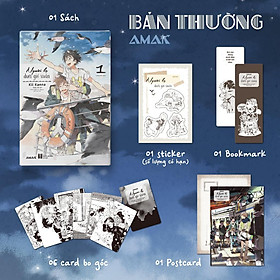 Bản thường: 01 bookmark, 01 postcard, bộ 6 card bo góc cán màng ánh trai, 01 sticker (số lượng có hạn cho 1000 đơn hàng đầu tiên). Giá bìa: 98.000vnd
