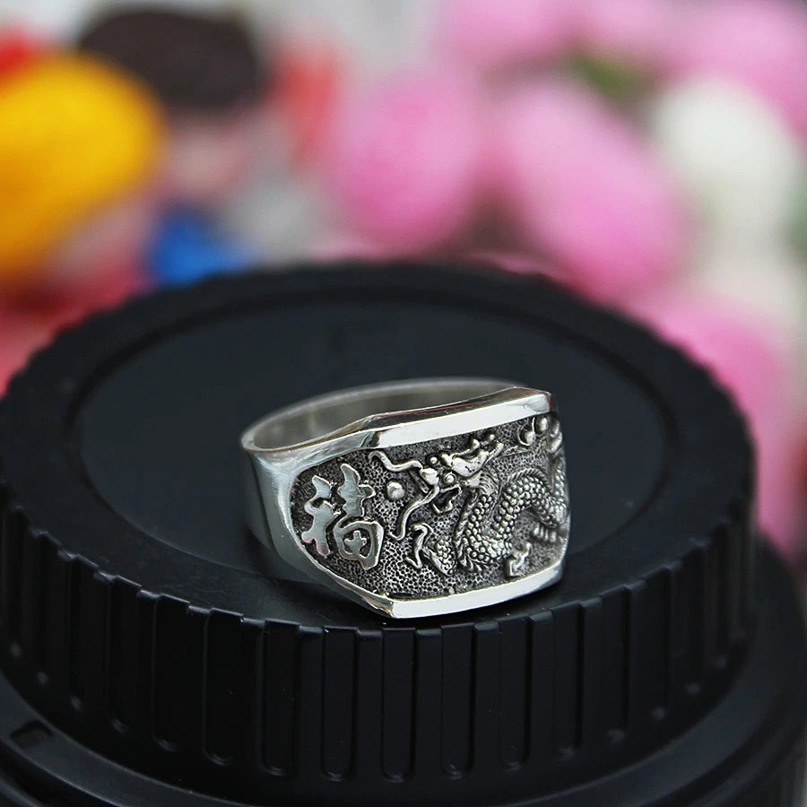 Chất liệu Thân Nhẫn: Hợp kim Titanium Chất liệu đá: Đá Zircon nhân tạo, kiểu dáng kim cương Thiết kế: Khắc rồng trên thân và mặt nhẫn, tinh xảo, chi tiết. Công dụng: Trang sức,