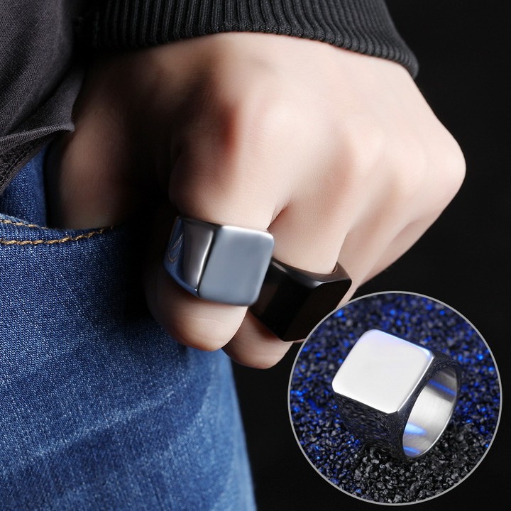 Nhẫn Nam Mặt Vuông Chất Liệu Thép Titan Không Đen Không Dị Ứng TT 1155