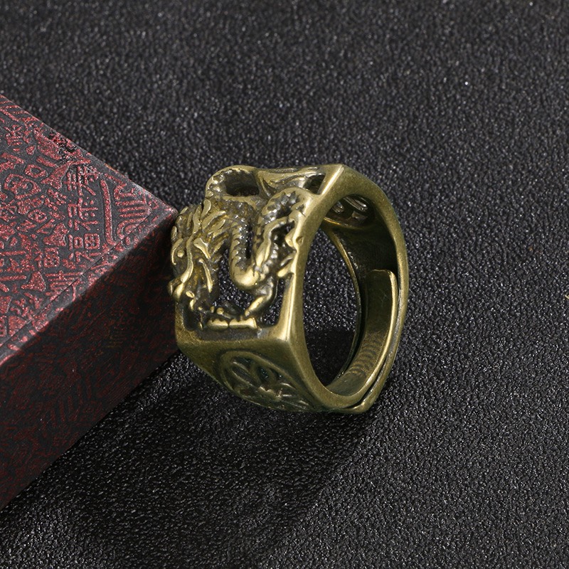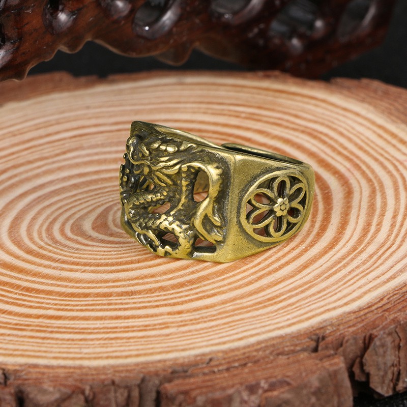 Chất liệu Thân Nhẫn: Hợp kim Titanium Chất liệu đá: Đá Zircon nhân tạo, kiểu dáng kim cương Thiết kế: Khắc rồng trên thân và mặt nhẫn, tinh xảo, chi tiết. Công dụng: Trang sức,