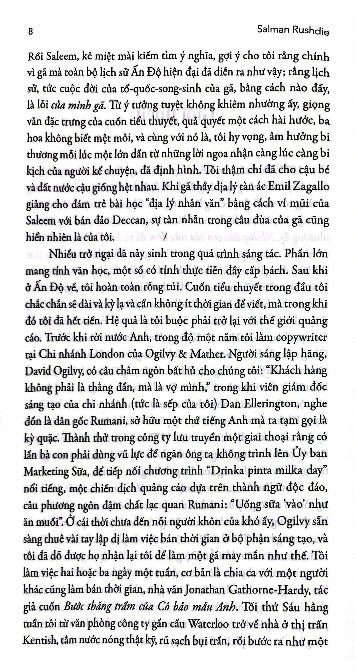 Như mọi tác phẩm khác của “thầy phù thủy” Salman Rushdie, Những đứa con của nửa đêm không phải được viết ra để đọc thật nhanh. Đồ sộ như chính nó, huyền hoặc như chính nó, với một người dẫn chuyện lơ đãng có chủ đích, một lượng từ vựng khổng lồ và vô vàn tham chiếu đến lịch sử cũng như thần thoại của một đất nước thịnh vượng bậc nhất về mặt văn hóa, Những đứa con của nửa đêm làm choáng ngợp ngay cả những người đọc dạn dày.