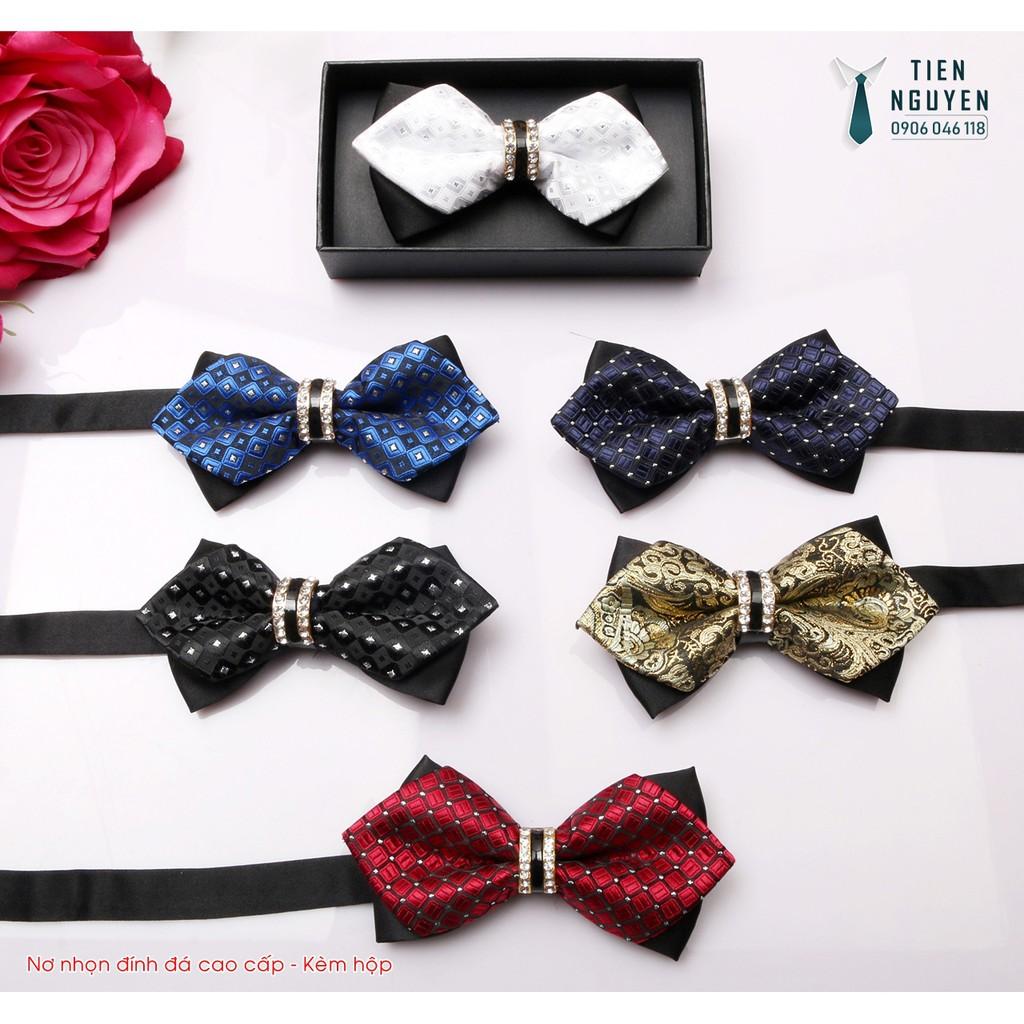 ✨Nơ chú rể, MC, ca sỹ - Nơ cánh nhọn cao cấp đính đá Full box