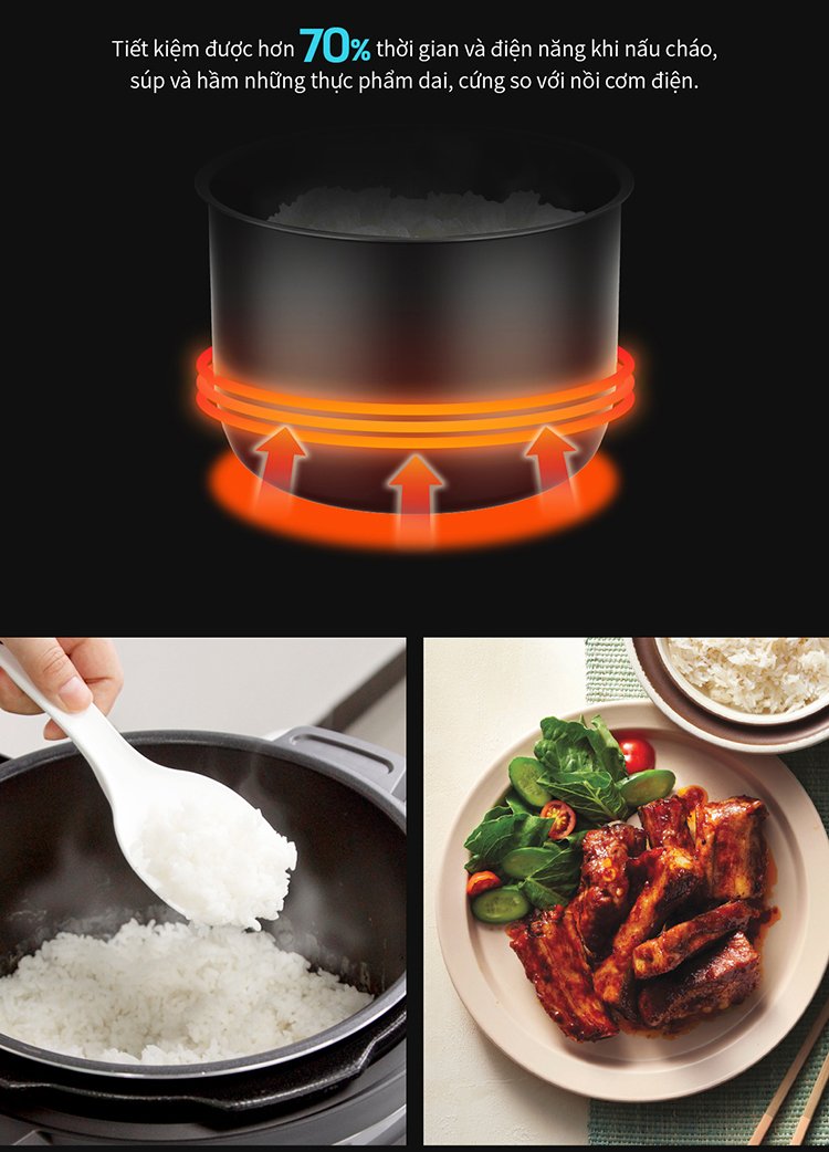 NỒI ÁP SUẤT hầm hấp dễ dàng, tiết kiệm thời gian với tính năng hẹn giờ và giữ ấm