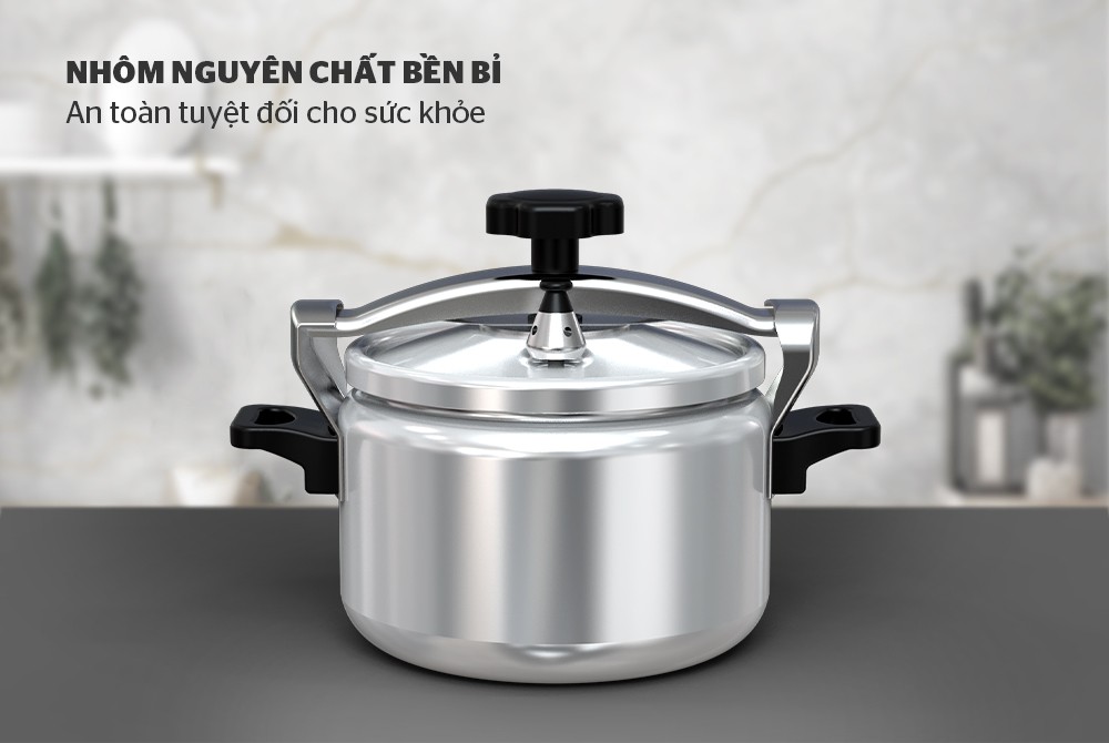 - An toàn, bền đẹp trong suốt quá trình sử dụng Sản phẩm được trang bị van xả 3 cấp độ và van an toàn, tự động xả áp khi áp suất trong nồi vượt quá mức cho phép, đảm bảo an toàn cho người sử dụng. Ngoài ra, với chất liệu nhôm cao cấp, sản phẩm có độ bền vượt trội, hạn chế trầy xước, sáng bóng, bền đẹp với thời gian.