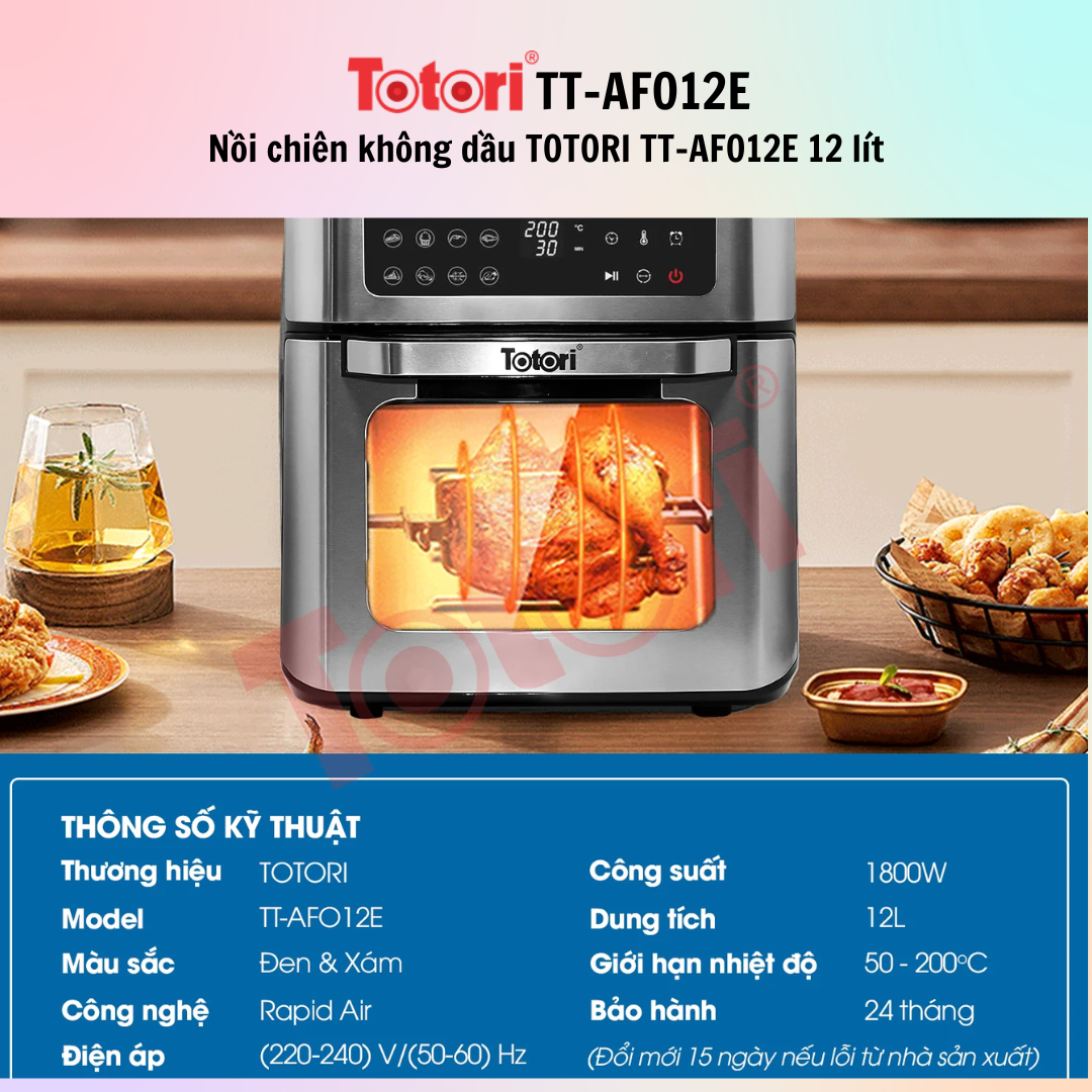 ✨Nồi chiên không dầu TOTORI TT-AFO12E / TT-AFO12M 12 lít - Hàng Chính Hãng - Bảo Hành 12 Tháng