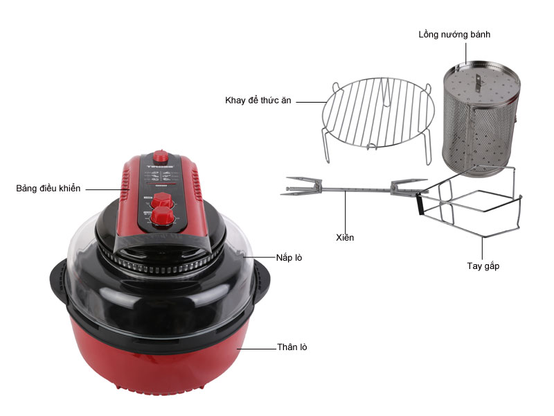 - Với công suất 1700w nhiệt được phân bố tối ưu với luồn khí nóng đối lưu nên thức ăn ko cần lật. Bề mặt vỏ inox sang trọng, tay cầm được chống nóng, thành