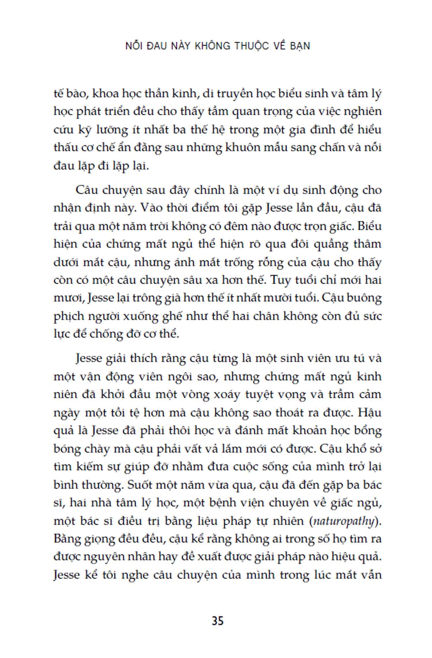 Nhờ vào những công trình nghiên cứu đột phá trong lĩnh vực khoa học thần kinh, di truyền học biểu sinh và tâm lý hậu sang chấn, các nhà nghiên cứu đã tìm ra một khả năng mới, rằng tổn thương này có thể không bắt đầu từ cá nhân đang chịu thống khổ, rằng nỗi đau này không thuộc về bạn! Một nỗi đau bị chôn vùi, đè nén, né tránh sẽ tự tìm đường quay lại cho đến khi nào nó thật sự được hóa giải. Khoa học đã chứng minh rằng các sang chấn từ những trải nghiệm đau đớn và không được hóa giải có thể được truyền lại cho các thế hệ tương lai – hiện tượng được các nhà chuyên môn gọi là những sang chấn liên thế hệ.