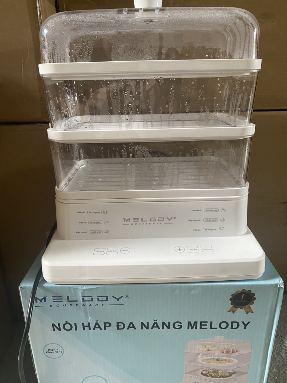 - Chất liệu tầng hấp: Nhựa PP thực phẩm trong suốt.
