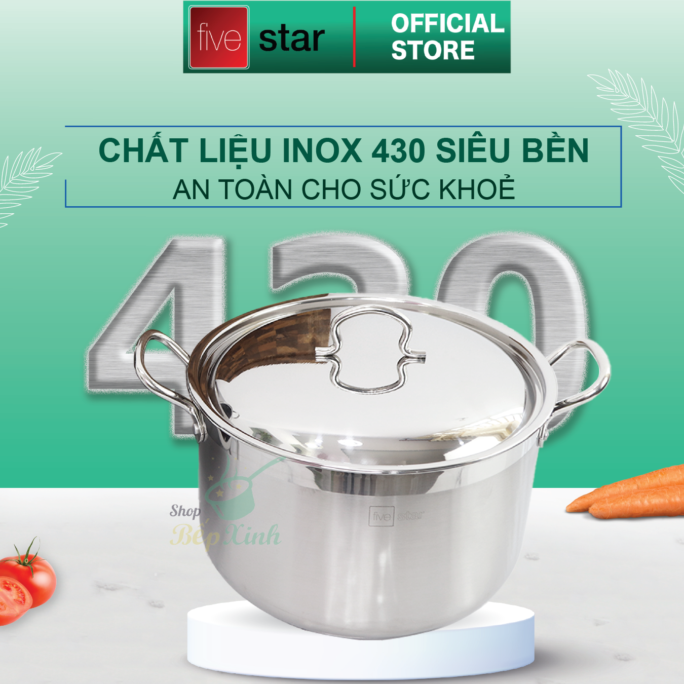 ✨Nồi inox 3 đáy inox 430 cao cấp FiveStar Standard N28-3D bếp từ nắp inox ( 28cm)