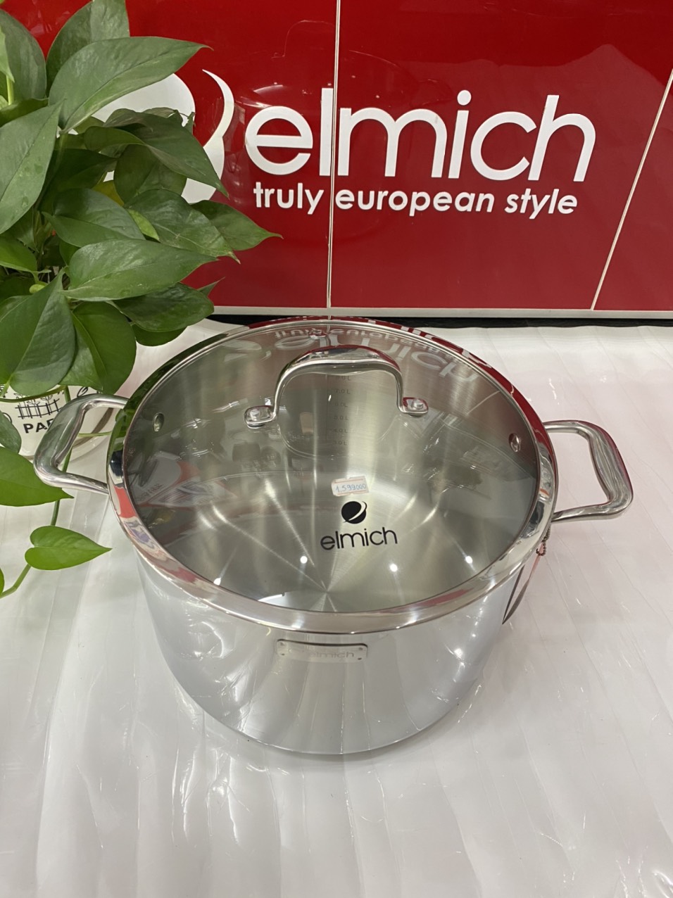 Nồi luộc gà 5 đáy Inox 304 Elmich EL-2525IN30 size 30cm cao 24cm dung tích 16L Model: EL-2525IN30 Mã: 2352525IN30 Thương hiệu: Elmich xuất xứ CH Séc Size: 30cm Chất liệu: Inox 304, vung kính cường lực, 5