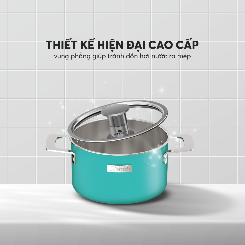 - Nồi inox liền khối Elmich Hera thiết kế hiện đại, màu sắc trẻ trung thời thượng.