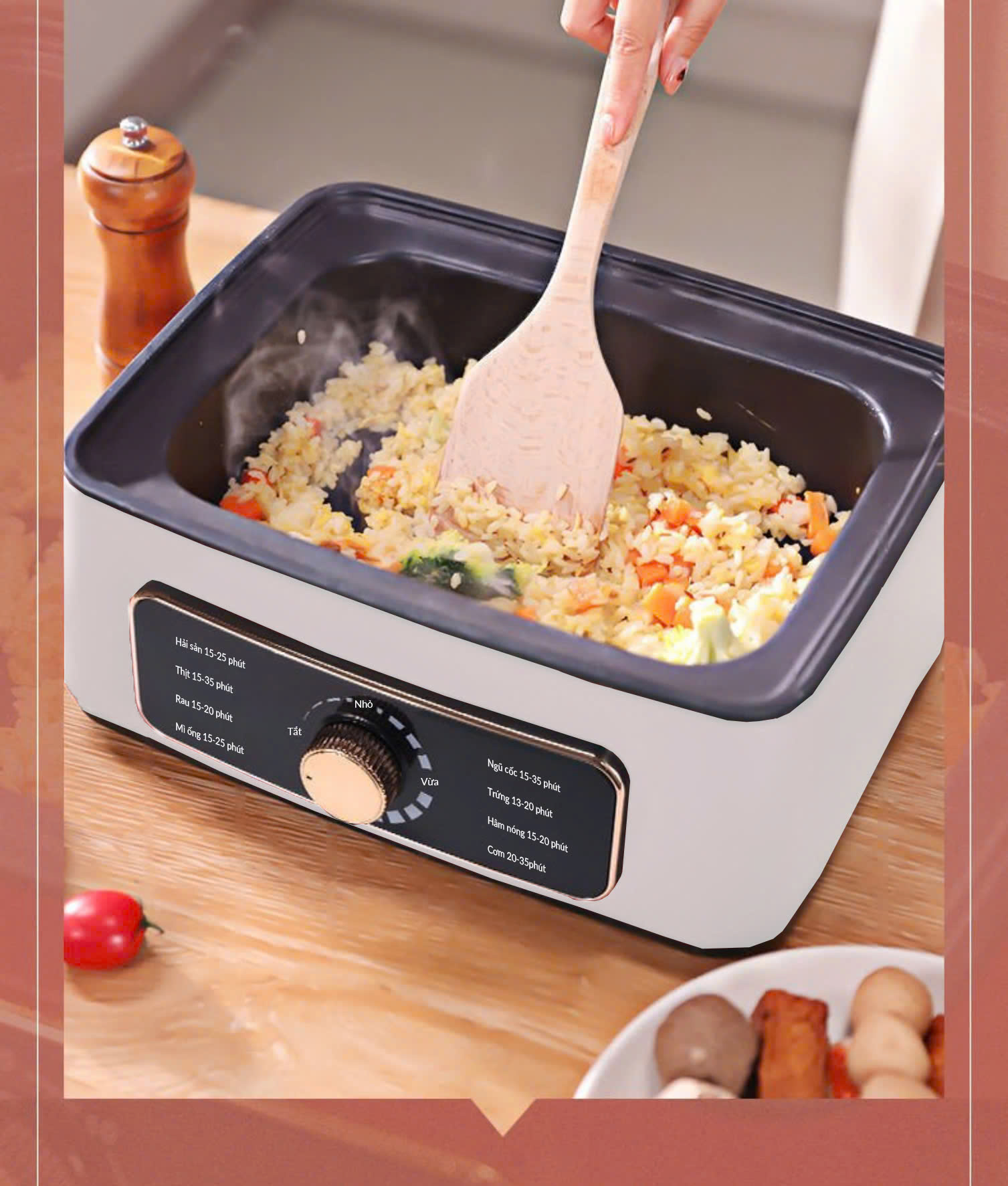 - Ngoài ra, khay riêng tách rời có thể nấu lẩu, áp chảo tiệc sum họp bao sang trọng tiện lợi