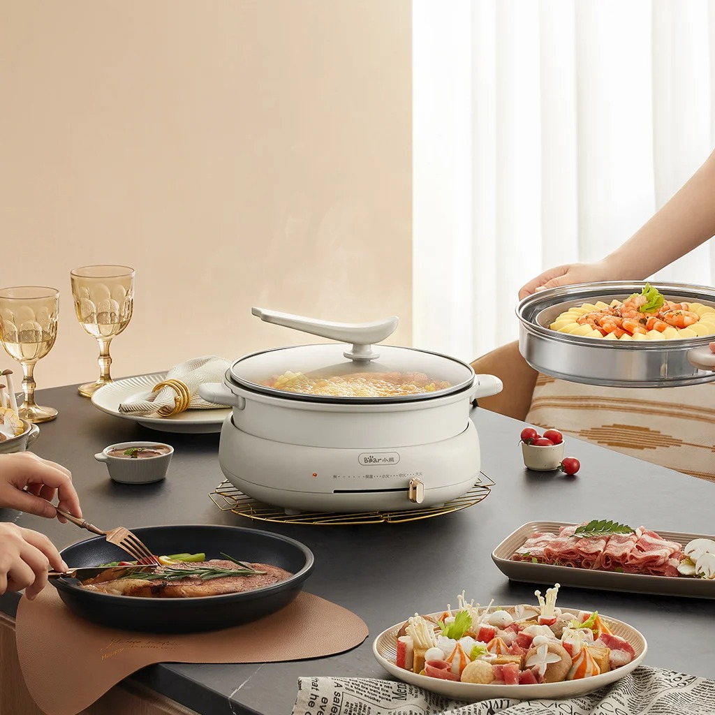 Nồi lẩu nướng đa năng Bear DHG-C40W2 - Hấp | Nấu Canh | Nhúng lẩu | Chiên | Nướng