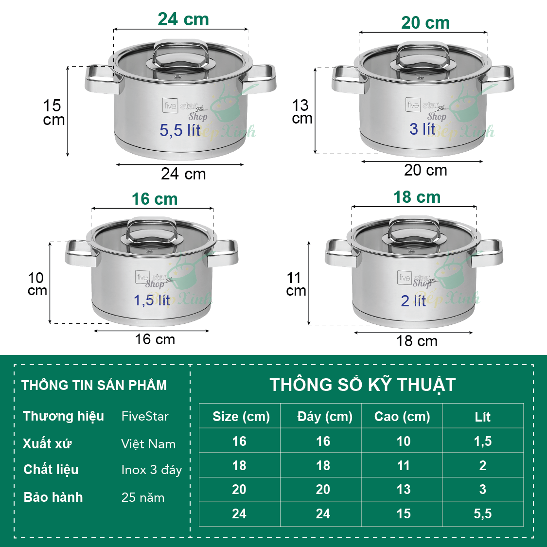 Nồi Inox 304 chống dính 3 đáy Fivestar 20cm dùng bếp từ, chính hãng bảo hành 60 tháng #sanhangre