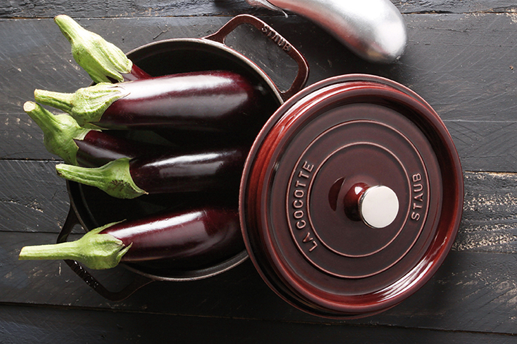 - Nồi tròn Staub bằng gang đúc tráng men - Nồi Tròn Staub – Màu Đỏ Lựu - Thiết kế sang trọng, có thể đặt ngay trên bàn ăn sau khi nấu. - Lớp phủ màu
